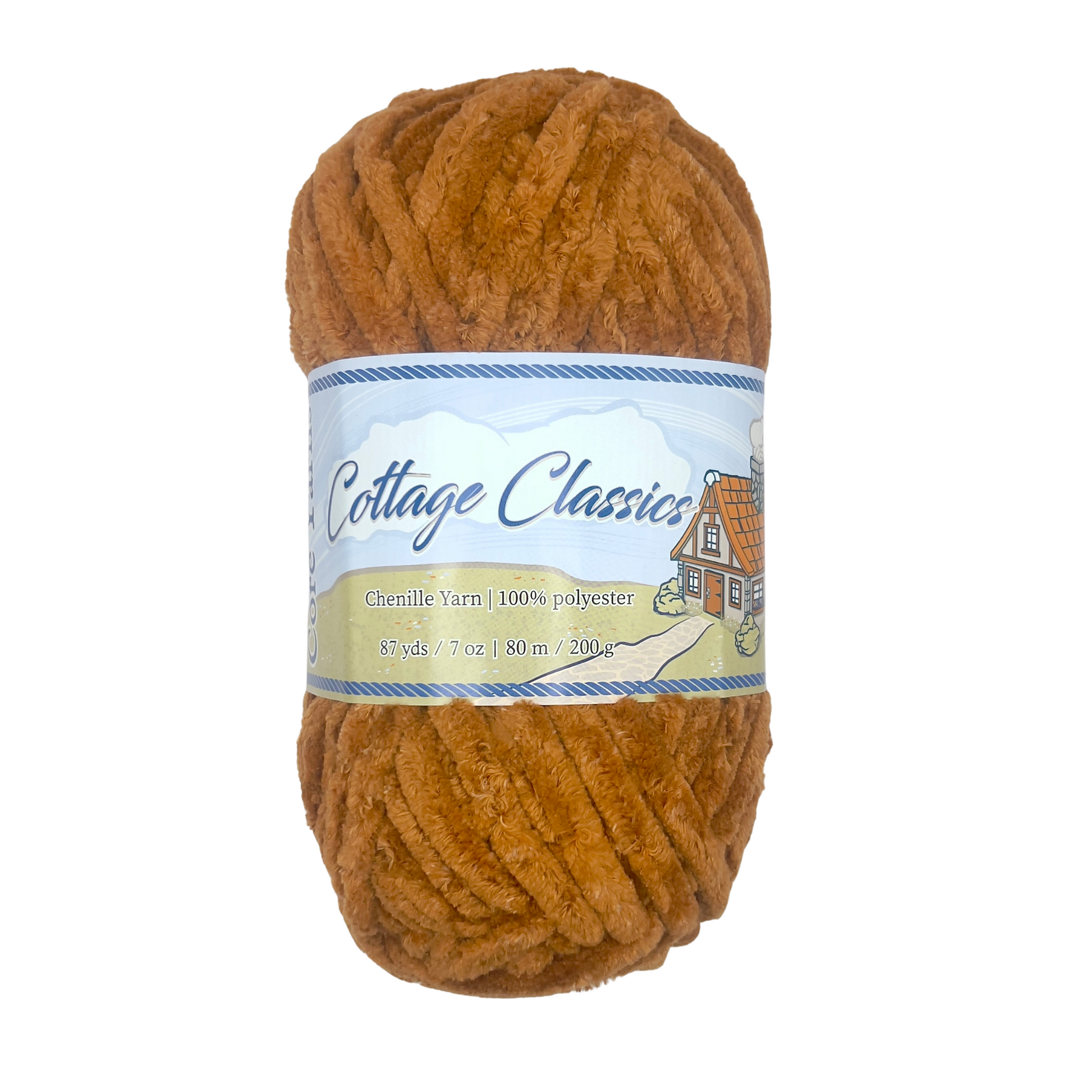 Cottage Classics is our jumbo-size line for larger projects and plushies. Embers is a burnt orange yarn and is one of nine core "Cottage Classics" colors. Each skein is made from ultra-soft chenille yarn designed to shed less than standard options, and each skein is 200g, so you can make more. Our yarn uses a specially designed manufacturing process to keep the fuzz on the yarn, rather than on you.