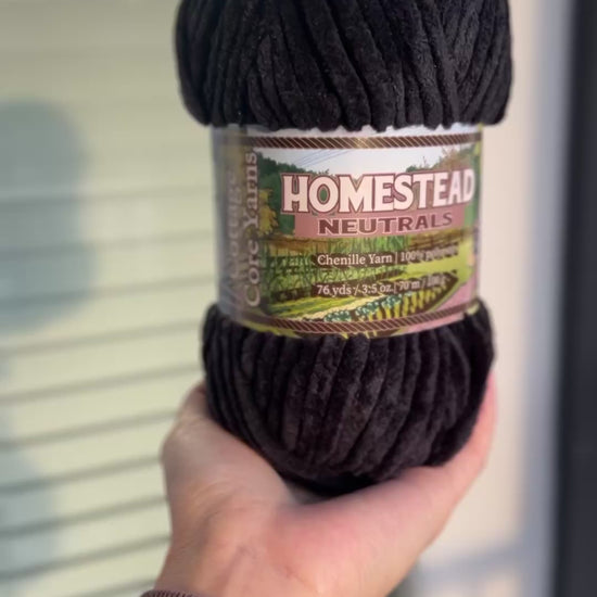 Coal is a deep black yarn. Each skein is made from ultra-soft chenille yarn designed to shed less than standard options-- perfect for both beginners and seasoned crafters. Our yarn uses a specially designed manufacturing process to keep the fuzz on the yarn, rather than on you. This plushie yarn is perfect for crochet amigurumi, baby gifts, and more. The Homestead Neutrals is a staple set of five neutral tones designed for everyday making.
