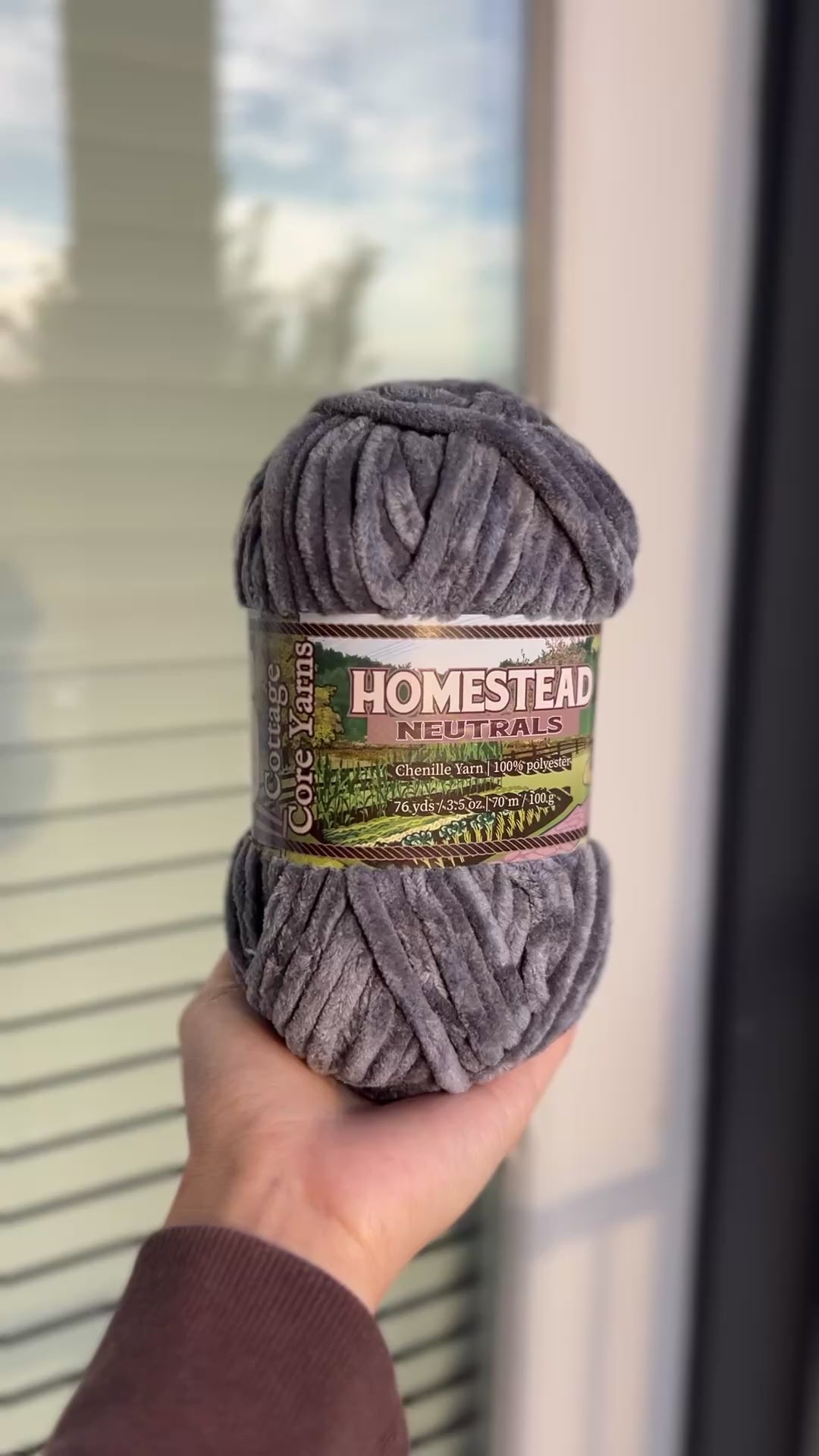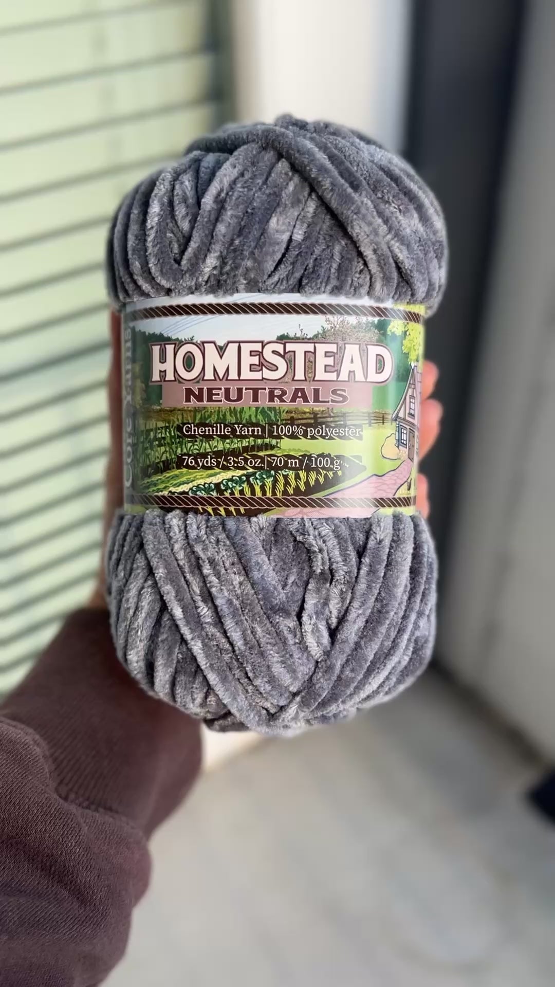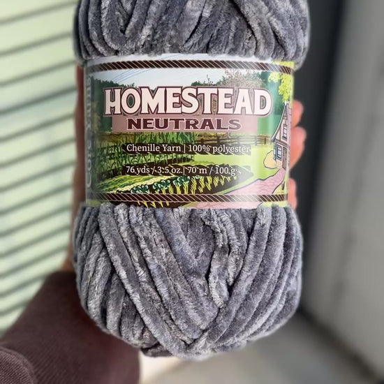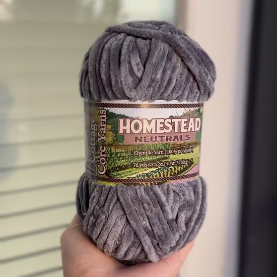 Stone Path is cobblestone gray yarn. Each skein is made from ultra-soft chenille yarn designed to shed less than standard options-- perfect for both beginners and seasoned crafters. Our yarn uses a specially designed manufacturing process to keep the fuzz on the yarn, rather than on you. This plushie yarn is perfect for crochet amigurumi, baby gifts, and more. The Homestead Neutrals is a staple set of five neutral tones designed for everyday making.